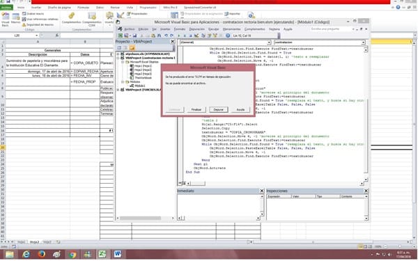 Tengo los archivos en la misma carpeta, el de excel en macros y las plantillas en .dotx, pero cuando le doy ejecutar, me sale en la pantalla error 5174 tiempo de ejecución