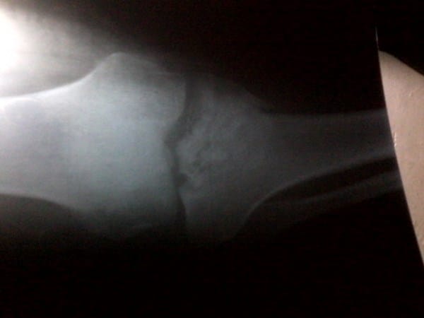 El 01/01/16 tube una accidente en motoxicleta fractura una meseta de la tibia con desplazamiento 2ml y no pude operarme por falta de recursos monetario la mantuve inmovilizada por 3 meses y sin afincarla hace días me tome RX y la meseta tibial ya pego tiene callo quedo un poquito hundida como un 1ml mi pregunta es quedare con dificultades para caminar y puedo ya realizar rehabilitaciones camino con un bastón apenas acá le ajunto la RX reciente gracias y esperando una pronta y positiva repuesta un DIOS LE PAGUE