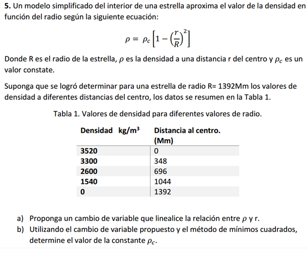 Buenas quisiera saber como hacer el cambio de variable de este ejercicio y como sacar el valor de rho c (la constante), lo de mínimos cuadrados si lo sé hacer...