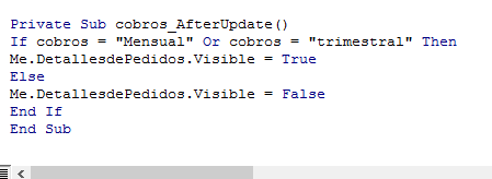 Mostrar subformularios (cambiar a visible) según valor de cuadro combinado