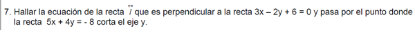 Hallar la ecuación de la recta L que es perpendicular a otra recta Y pasa por el punto donde la recta...