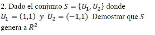 Y si no habeis dado nada de lo anterior se demuestra por definición. Será un sistema generador de R2 si para cualquier punto (c, d) de R2 existen escaleres a y b de R tales que