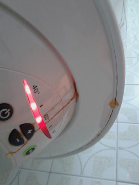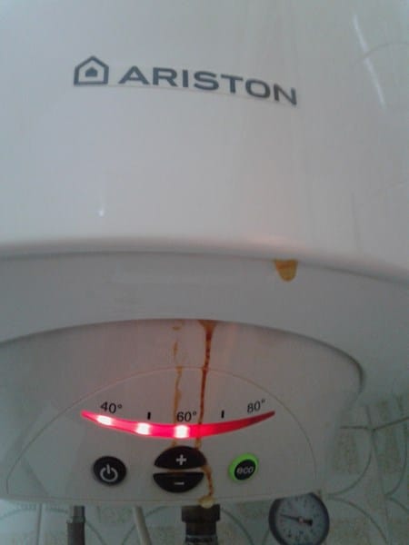 Tengo un termo Ariston instalado hace al menos 6 años y de pronto ha empezado a gotear y no para. El agua que gotea es color óxido y no sabemos a qué se puede deber. Adjunto fotos.