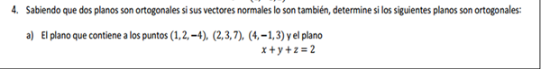Y paa obtener el vector normal al plano que pasa por esos tres puntos podemos hacer el producto vectorial de dos vectores independientes del plano
