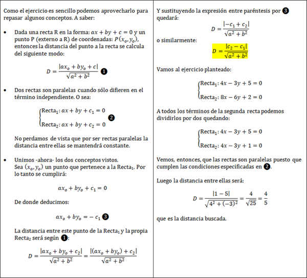 Determina la distancia entre las rectas 4x-3y+5=0 y 8x-6y+2=0