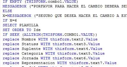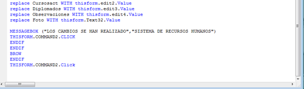 Tengo un pequeño problema tengo un form donde agrego información a la base de datos, y en otro form tengo un combo para poder cargar la información que ya fue agregada para ese usuario la cuestión es que cuando abro el form de modificación selecciono el usuario y hago las modificaciones pertinentes y los guardo pero lo más extraño es que no las guarda la configuración del botón guardar del fom para modificar es esta