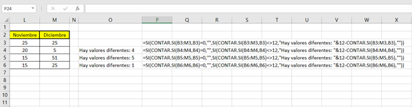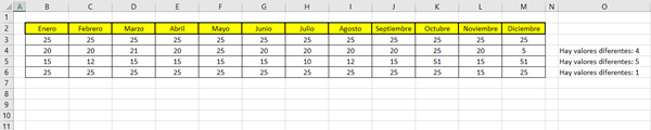 Tengo unos valores en un rango de celdas con valores iguales, necesito una formula que me avise cuando en una celda cambie algún valor. Lo intente con la función Si, pero no pude.