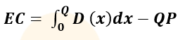 El excedente del consumidor de un producto para un nivel de venta a un precio P de QUE artículos, está dado por la expresión: