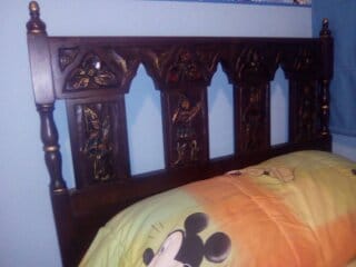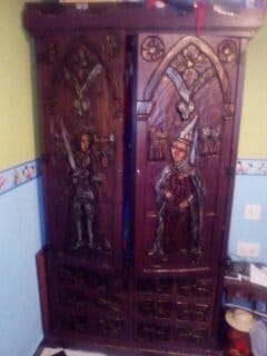 Os agradecería mucho que me aportarais toda la información posible sobre un dormitorio antiguo que tengo por herencia y del cual no se nada. Época, estilo, valor aproximado y todo lo que consideréis relevante. El dormitorio consta de cama individual y armario de dos puertas, todo ello tallado con motivos medievales. He intentado buscar en la red algún mueble igual, pero no lo he conseguido. A ver si alguien me puede orientar. Os agradezco vuestra ayuda de antemano.
