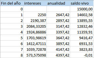 Una empresa solicita un préstamo de $15.000 a una (Tasa Efectiva Anual del 15% con el convenio de que la deuda se pagara durante un periodo de 8 años. El programa de pagos se acuerda de tal forma que cada uno sera mayor en $250 que el precedente, con el primer pago un año después de que el préstamo sea negociado. Determina la cantidad que constituye el tercer pago.