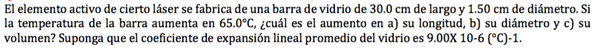 c) ¿Su volumen? Suponga que el coeficiente de expansión lineal promedio del vidrio es 9.00X 10-6 (°C)-1.
