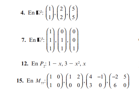 Y ya no se puede hacer ninguna fila con todo 0, luego el rango es 3 y los tres son l.i.