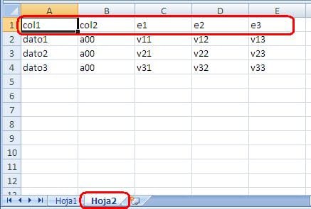 3) La columna 3 es el encabezado que uso para la hoja dos (En este caso E1, E2 y E3, solo lo transpongo una vez para formar los títulos).