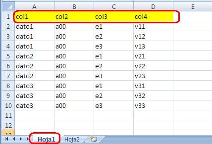 1 ) la columna 1: siempre se repite 3 veces el valor (En este caso: Dato 1, Dato 2 y Dato 3 están 3 veces cada uno)