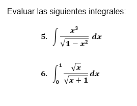 (Integrales inmediatas) y las diferentes técnicas o métodos de integración como integración inmediata con sustitución, integración por cambio de variable, integración por racionalización e integración por sustitución trigonométrica.