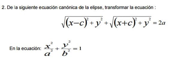 . De la siguiente ecuación canónica de la elipse, transformar la ecuación :