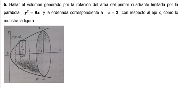 El volumen generado por la rotación del área del primer cuadrante que limita con la parábola...