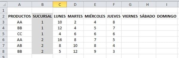 Muchas gracias Elsa por tu respuesta. La planilla que planteó es tal y como la entendiste. Efectivamente la solución que tu me das es correcta y prolija. Pero me gustaría no tener que repetir filas para cada sucursal. Saludos. Pablo.