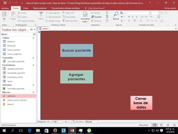 Intento crear una base de datos access para un consultorio que realice las siguiente funciones: