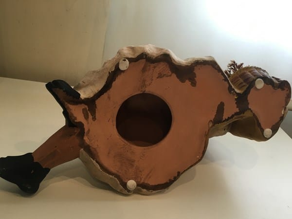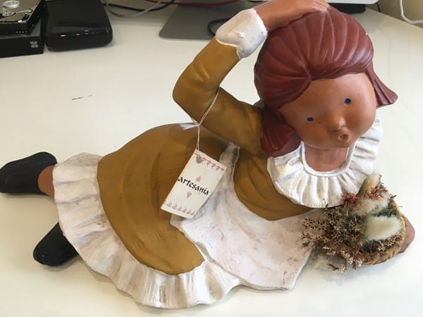 Hola. Hace 16 años nos regalaron esta figura de terracota producida en Valencia. Nunca se ha usado, aún tiene etiqueta. Mide 40 cm x 20 cm x 22 cm de alto. En la etiqueta se muestra "modelo patentado" y "pintado a mano". ¿Qué valor puede tener?