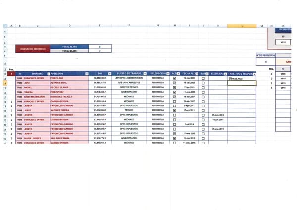 Tengo una tabla de excel con los Registros de Altas y Bajas en la Empresa y quería con el Formato Condicional que de todos los trabajadores activos me los señalizara con color los que están fijos.