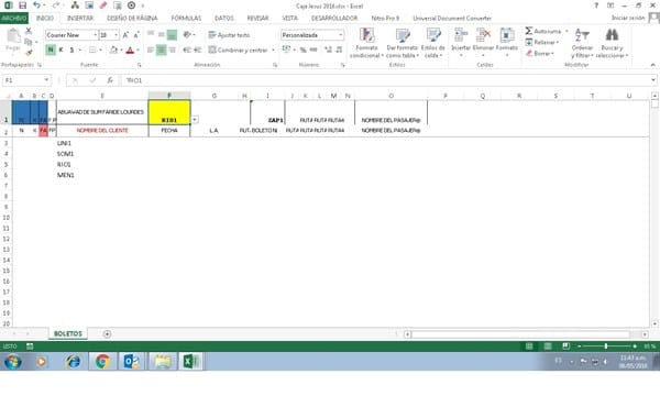 Trabajo con dos libros uno Caja Jesús 2016 y otro Cuentas por cobrar, bueno en mi libro caja en la hoja BOLETOS en la celda F1 ingreso el nombre de una de las hojas de mi otro libro Cuentas por cobrar, para este ejemplo solo puse algunas hojas, pero la verdad tengo como 200 hojas que las utilizo.