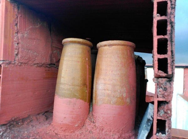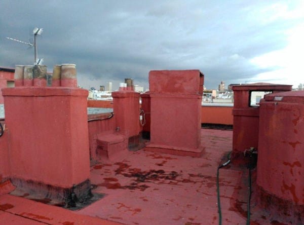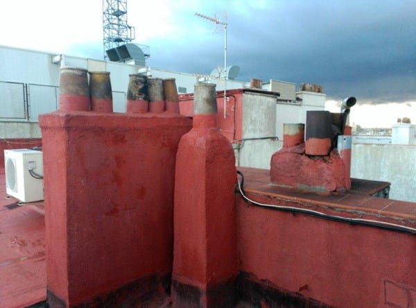 Las calderas tienen un tubo que sale directamente al patio y estas chimeneas de las azoteas no se para que son, quizás para las campanas extractoras de la cocinas pero ¿cuándo llueva no se llenarán de agua si no están techadas?