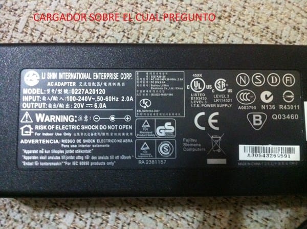 Agradecería que alguien me ayudara a saber si es conveniente o no utilizar un cargador 20V 6.0A en un pc en el cual utilizo actualmente un cargador 19V 4.74A.