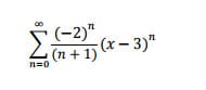 $$\begin{align}&Si \lim_{n\to \infty} \left|\frac{a_{n+1}}{a_n}\right|=L\implies R =\frac 1L\\&\\&\lim_{n\to \infty}\left|\frac{\frac{(-2)^{n+1}}{n+2}}{\frac{(-2)^n}{n+1}} \right|=\lim_{n\to \infty}\left|\frac{(-2)(n+1)}{n+2}\right|=2\\&\\&\text{Luego } R=\frac 12\\&\\&|x-3|\le \frac 12\\&\\&-\frac 12\le x-3 \le \frac 12\\&\\&3-\frac 12\le x\le 3+\frac 12\\&\\&\text{en principio desechamos los extremos}\\&\\&\left( \frac 52, \frac 72\right)\\&\\&\text{Para }x=\frac 52\\&\\&\sum_{n=0}^{\infty}\frac{(-2)^n}{n+1}·\left(-\frac 12 \right)^n=\sum_{n=0}^{\infty}\frac{1}{n+1}\text{es divergente}\\&\\&\text{Para }x= \frac 72\\&\\&\sum_{n=0}^{\infty}\frac{(-2)^n}{n+1}·\left(\frac 12 \right)^n=\sum_{n=0}^{\infty}\frac{(-1)^n}{n+1}\\&\text{es una sucesión alternada decreciente y converge a 0}\\&\text{la serie es convergente por el criterio de Leibniz}\\&\\&\text{Luego el conjunto de convergencia es}\\&\\&\left( \frac 52, \frac 72\right]\\&\\&\\&\end{align}$$