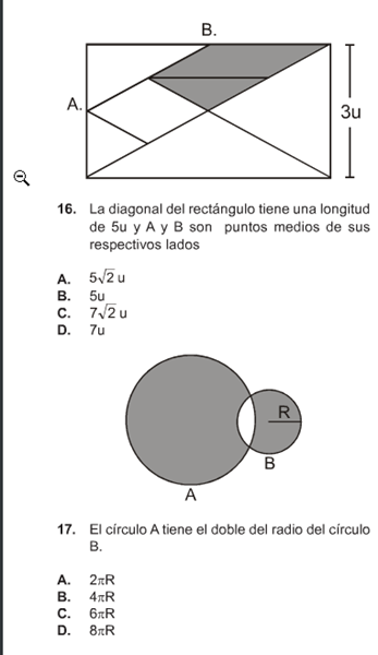 16) No mide nada de lo que dicen. El lado B mide 4u aplicando el teorema de Pitagoras 3^2 + 4^2 = 5^2