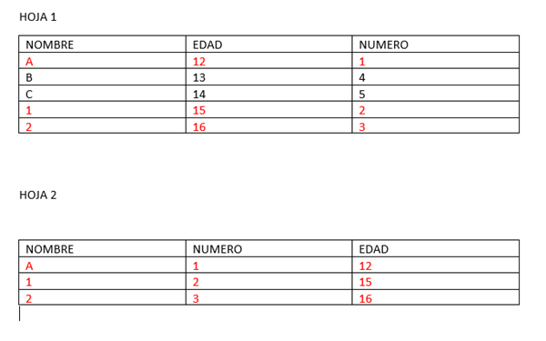 tengo dos hojas de Excel en la que comparar dos columnas (una de cada hoja)