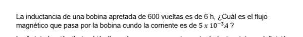 La inductancia de una bobina apretada de 600 vueltas es de 6 h, ¿Cuál es el flujo magnético que pasa por la bobina cundo la corriente es de?
