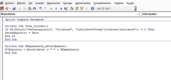 Docmd.runsql"update pedidos set fecharegistro=Date(),Nºregistro=... where ...."