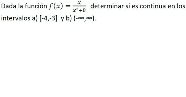 Resolver la función ?(?) = ? / ?2+8 y determinar si es continua en los intervalos a) [-4,-3] y b) (-∞,∞)