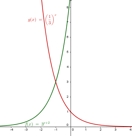 Grafica las funciones a) y= 3x+2 y b) y= (1/3)x e indica cual corresponde a un crecimiento exponencial y cual a un decaimiento exponencial.