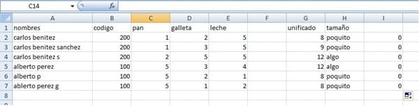 Todos los carlos son el mismo, y los unifique bajo el nro. 200, cual es la manera mas practica de sumar las columnas C, D y E, de los carlos, ¿los albertos?