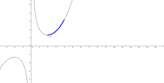 $$\begin{align}&\int_a^b \sqrt{1+[f'(x)]^2}dx=\\&\\&f(x)=\frac{x^4+48}{24x}\\&\\&f'(x)=\frac{4x^3(24x)-(x^4+48)24}{(24x)^2}=\frac{4x^4-x^4-48}{24x^2}=\frac{3x^4-48}{24x^2}\\&\\&1+[f'(x)]^2=1+\Bigg[\frac{3x^4-48}{24x^2}\Bigg]^2=\frac{24^2x^4+9x^8-288x^4+48^2}{24^2x^4}=\\&\\&\frac{9x^8+288x^4+48^2}{24^2x^4}=\frac{9(x^8+32x^4+256)}{24^2x^4}=\frac{9(x^4+16)^2}{24^2x^4}\\&\\&\int_2^4 \sqrt{1+f'^2}dx=\int_2^4 \sqrt{\frac{9(x^4+16)^2}{24^2x^4}} dx= \int_2^4 \frac{3(x^4+16)}{24x^2}dx=\\&\\&\frac{1}{8} \int_2^4 \frac {(x^4+16)}{x^2}dx= \frac{1}{8} \int_2^4 (x^2+16x^{-2})dx=\\&\\&\frac{1}{8} \Bigg[ \frac{x^3}{3}-\frac{16}{x} \Bigg ]_2^4=\frac{1}{8} \Big[ \frac{4^3}{3}-4-\Big(\frac{2^3}{3}-8 \Big) \Big]=\frac{17}{6}\\&;)\end{align}$$saludos