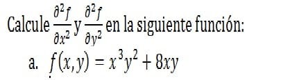 Calcule (∂^2 f)/〖∂x〗^2 y (∂^2 f)/〖∂y〗^2 en la siguiente función: f(x,y)=〖x^3 y〗^2+8xy