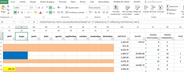 Tengo una serie de pagos de abonos. El convenio tiene fecha de inicio y fecha final.