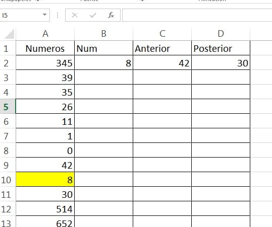Pon los datos de la siguiente forma: los números en la columna A, el número a buscar deberás ponerlo en la celda B2. Los resultado se mostrarán en la columna C: