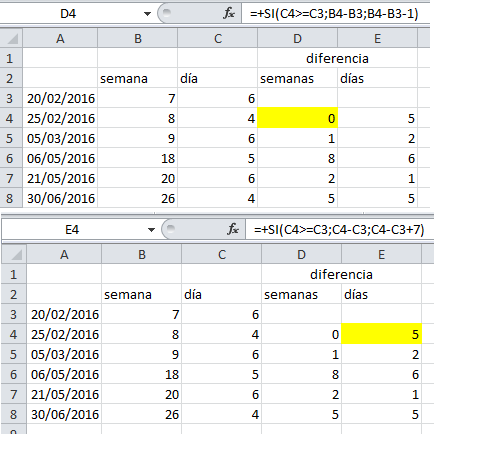 Como hago para calcular las semanas y días transcurridas desde una fecha anterior, ¿pero ya en esa fecha anterior habían tantas semanas con tantos días?