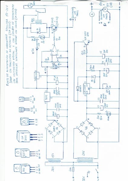 He construido la fuente de alimentación variable la cual lleva un tip 3055 para aumentar la corriente hasta 4 amp. Y regula bien pero con un simple taladro mini que consume 0,8 amp. El tip se calienta en exceso hasta el punto de tocar con el dedo y quemar.