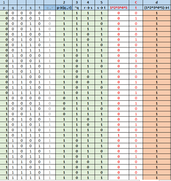 Pero una vez que hice eso el profe corrigió diciendo que quería que estuvieran todas, aunque no hiceran falta. Luego haré la tabla con las 5 proposiciones.