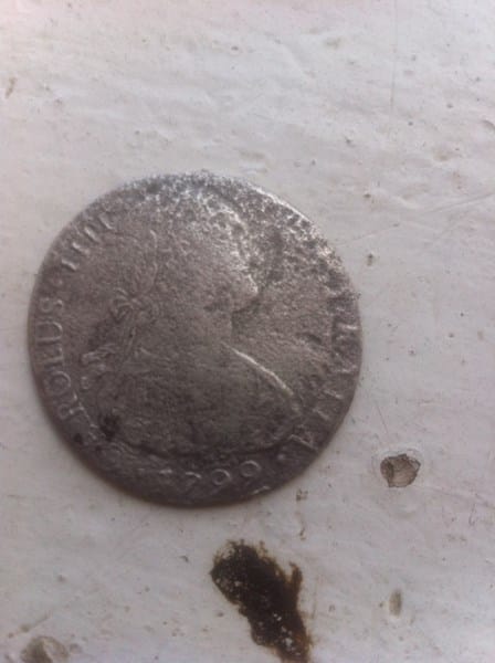 En 1799 se hicieron reales de a ocho como estos en Guatemala, Lima, Méjico, Potosí y Santiago. No consigo ver la ceca en las fotos que envías, pero ese dato se encuentra a la izquierda del reverso. Si la moneda estuviera en muy buenas condiciones su precio oscilaría entre los 50 y los 450 € dependiendo de la ceca. En las condiciones en las que está, poco más que el valor de la plata al peso.