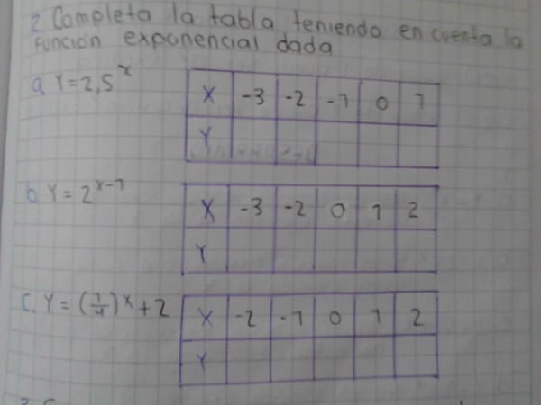 Completa la tabla teniendo en cuenta la función exponencial dada