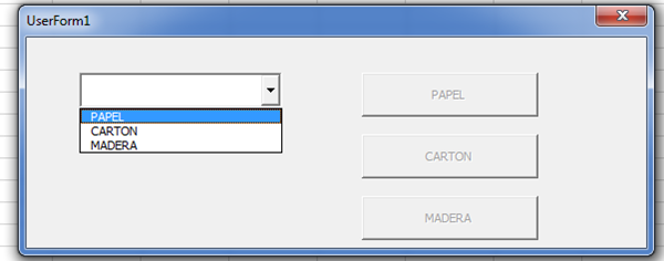 Tengo un combobox y 12 botones los cuales quiero que se activen dependiendo de la palabra que se seleccione en un combobox uno u otro por ejemplo tengo uno que dice cartón otro madera otro papel quiero que se active el de papel cuando en el combobox aparezca la palabra papel o el que dice cartón se active cuando aparezca en el mismo combobox la palabra cartón y así con los diferentes botones alguien tiene este condigo que me pueda ayudar