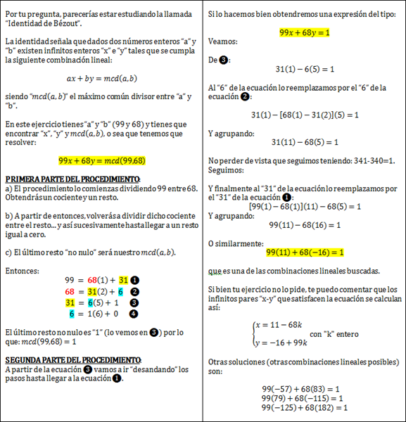 Luego en este caso el MCD es 1 y la combinación lineal es: