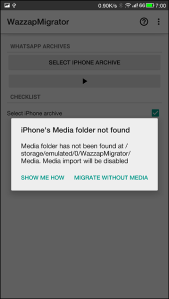 Paso 5: Descargar e instalar WazzapMigrator aplicación en tu Android. La aplicación está disponible como versión Lite (gratis) con el que se puede extraer sólo los mensajes de texto a WhatsApp. Sin embargo, la versión Pro en $ 2,99 También puede extraer los archivos de medios también. Dependiendo del tamaño de la copia de seguridad, la extracción puede llevar algún tiempo, pero no debe ser superior a 2 horas. Pero aún así, asegúrese de hacer apoyar a los desarrolladores si la aplicación que ayuda.