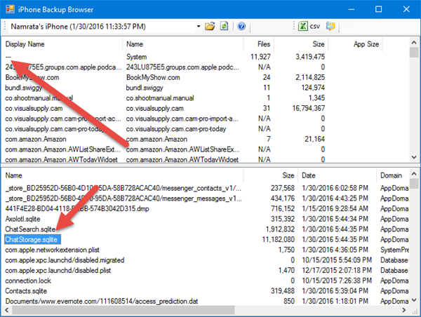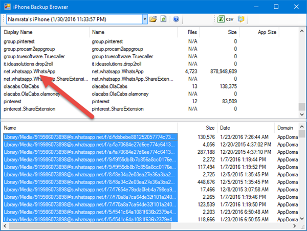 Paso 3: Éste es un poco complicado. En primer lugar, haga clic en el signo (-) y luego extraer el archivo a una carpeta ChatStorage.sqlite. Este es el archivo que tiene todo el respaldo de texto de sus conversaciones de WhatsApp. Si usted desea tomar los medios de copia de seguridad también, buscar el grupo net. Whatsapp. WhatsApp y luego seleccionar y extraer todo bajo la sección / Biblioteca de medios audiovisuales. Por favor refiérase a las dos capturas de pantalla para una mejor comprensión.