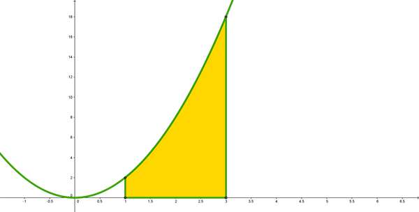 $$\begin{align}&f(x)=2x^2\end{align}$$entre los puntos (1,2) y (3,18)